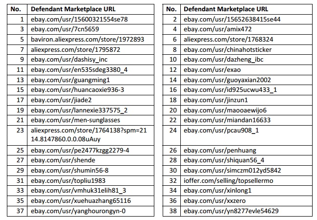最新的GBC的案子 Leave a reply 刚刚发现GBC网站发布了一个新的案子: http://gbcinternetenforcement.net/16-10121 还是老生常谈的雷朋和Oakley眼镜,受害者名单如下: 完。