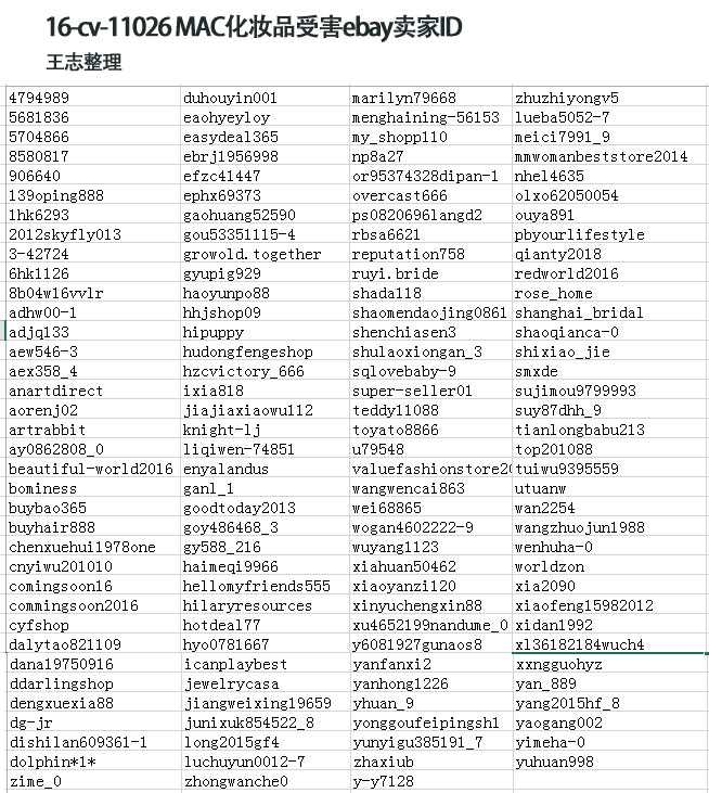 另外MAC案件的受害者名单已经出来了,ebay卖家ID如下: